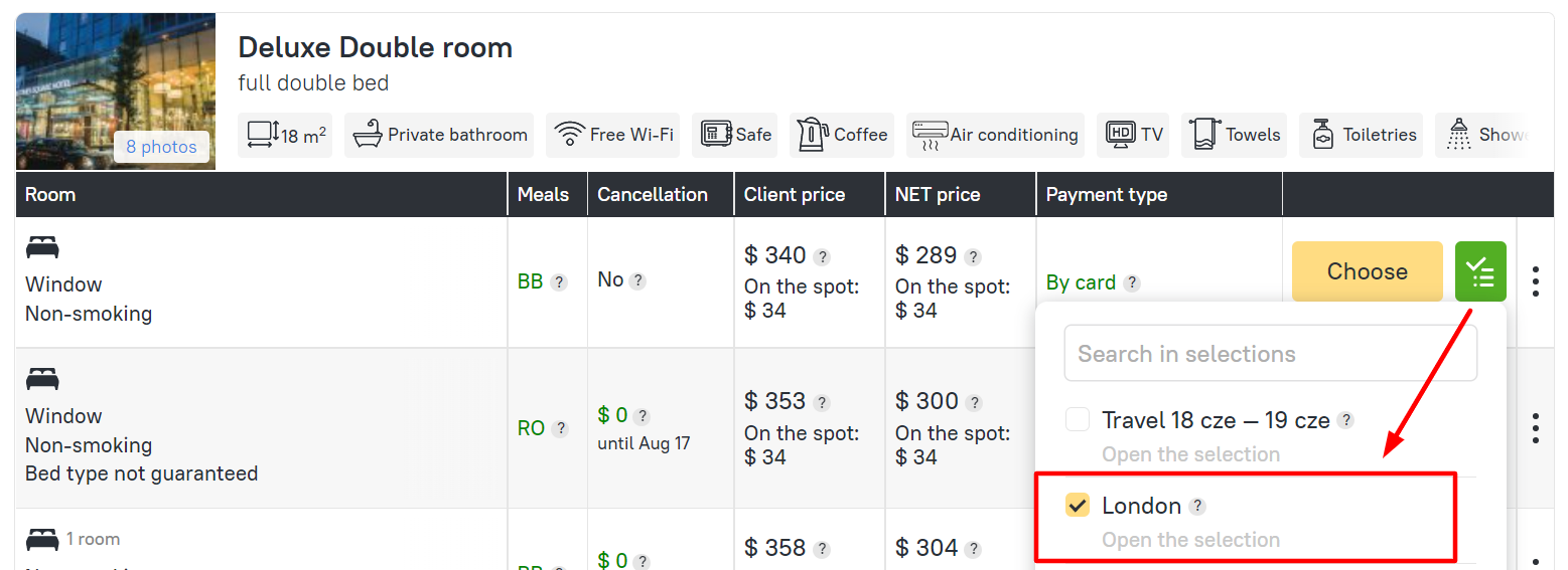 Once the client decides which hotel they want a second stage of the operation usually awaits the travel agent: you have to find the selected rate for the selected hotel, check that all the conditions meet the client’s requirements, and only then begin booking.
