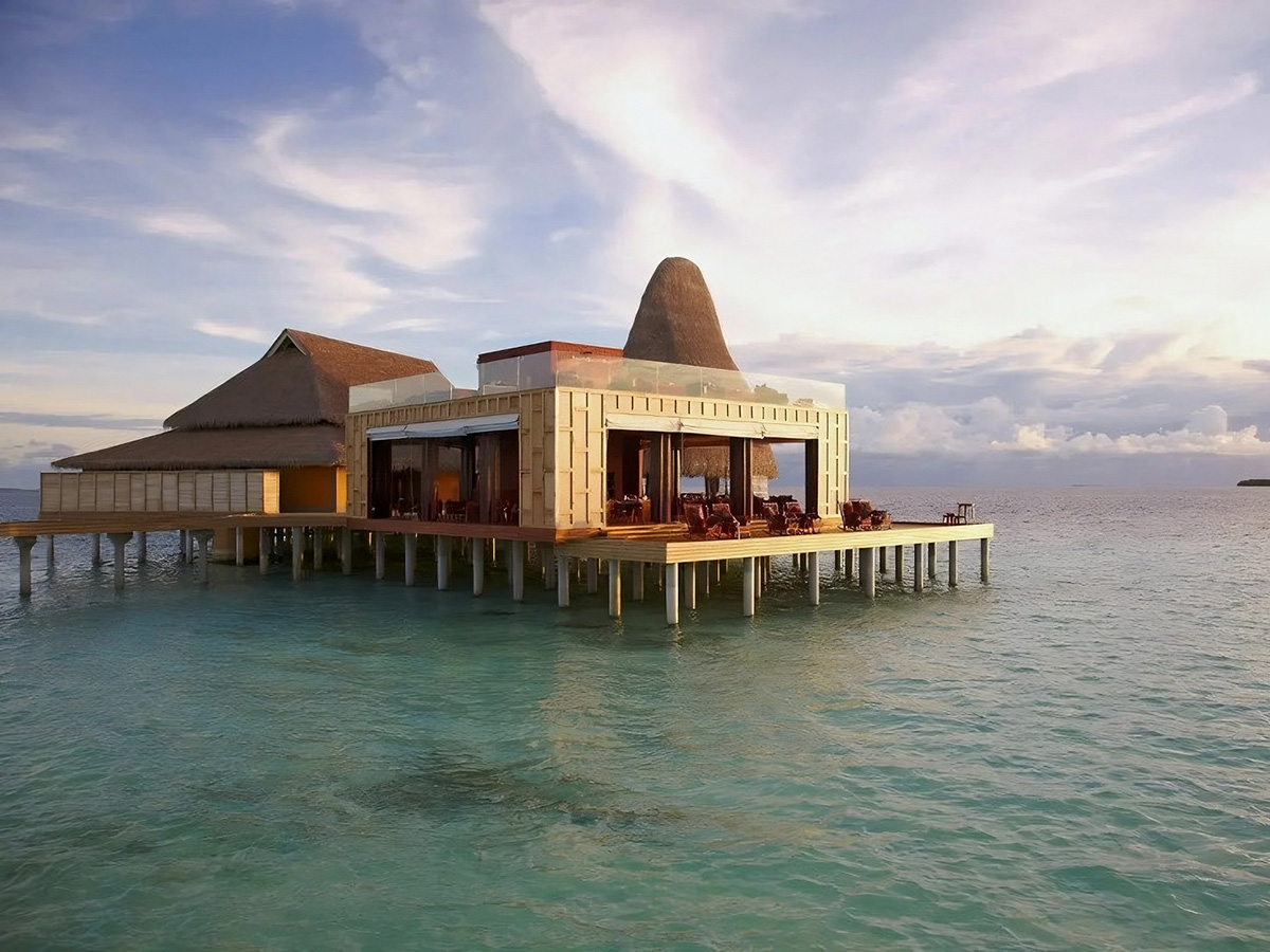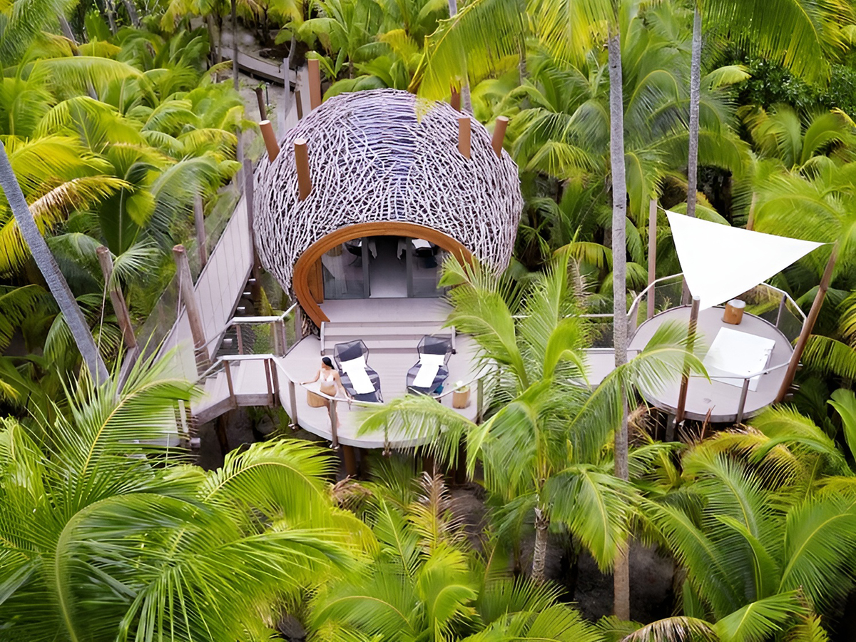 Amenities are where this property hits it out of the park, from a spa with floor-to-ceiling windows and a wellness menu that offers energy healing and Ayurvedic therapies. The complex is home to the only underwater caviar restaurant in the Maldives and also features an astronomy-inspired rooftop bar.