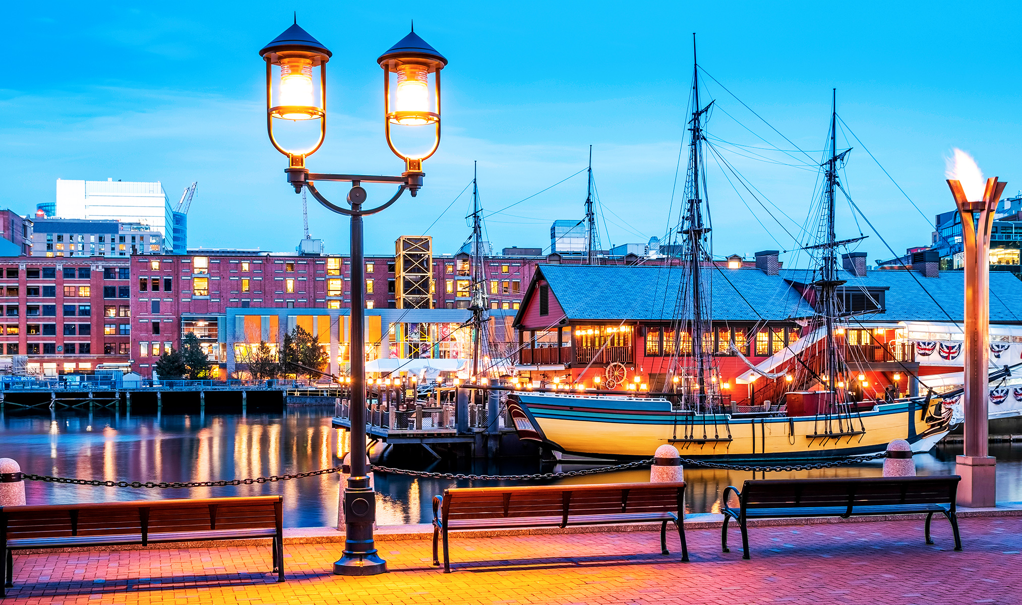 Im Boston Tea Party Ships and Museum können Gäste Tee in den Hafen werfen, bevor sie den 15-minütigen Spaziergang zum New England Aquarium antreten. Entspannen Sie sich in einem der Schwanenboote im Boston Public Garden und lassen Sie den Tag mit einem Red-Sox-Spiel im Fenway Park ausklingen.