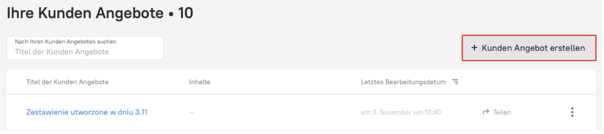 Klicken Sie einfach auf „Kunden Angebot erstellen“. Sie können einen automatisch generierten oder Ihren eigenen individuellen Titel auswählen. Viele Schritte, wie Erstellen, Öffnen und Namen festlegen, sind nicht mehr notwendig.