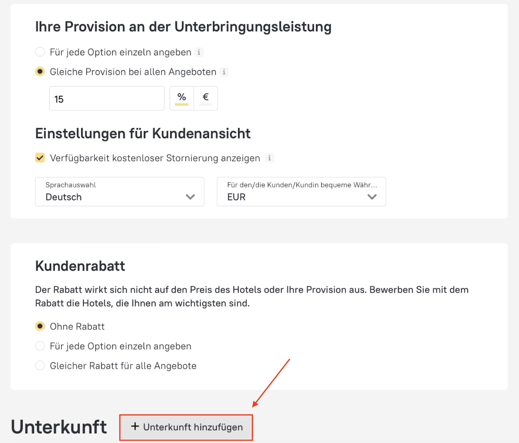 Früher mussten Sie nach der Erstellung einer Angebotsauswahl selbst auf die Hotelsuchseite gehen.