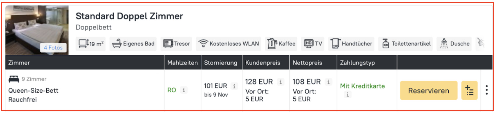 Es können Situationen auftreten, in denen zwei Zimmer zu einer Anfrage in einem Hotel passen. Vorher waren sie lediglich anhand des Namens und des Preises voneinander zu unterscheiden; was nicht selten zu Unverständnis bei Kunden führte, warum sie für das gleiche Zimmer mehr zahlen sollten. Jetzt können sie die Preisunterschiede zwischen einem Luxus- und Standardzimmer visuell hervorheben.