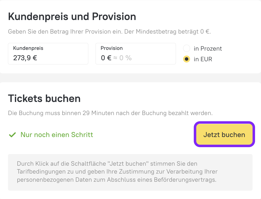 - Geben Sie die Fahrgastdaten auf der Buchungsseite ein, prüfen Sie die Fahrpreisbestimmungen und fahren Sie mit der Zahlung fort