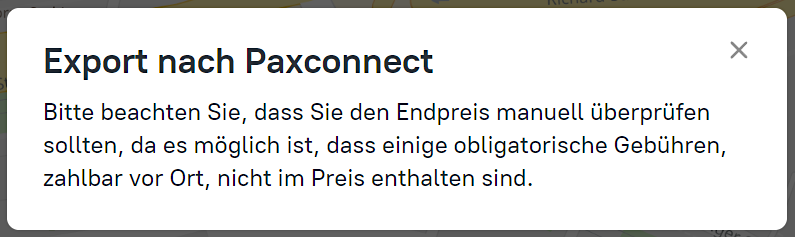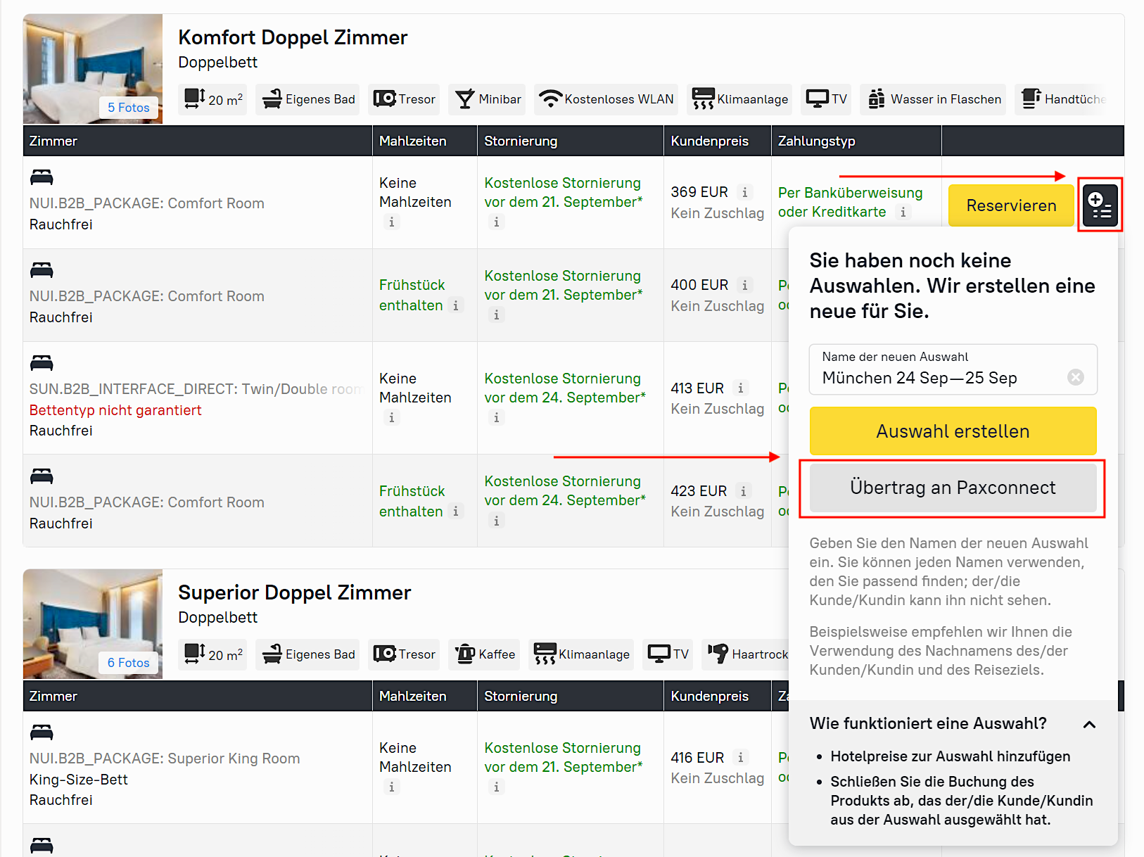 2. Wählen Sie ganz unten “Übertrag an paxconnect” und Sie erhalten die einzelne Rate in der paxlounge.