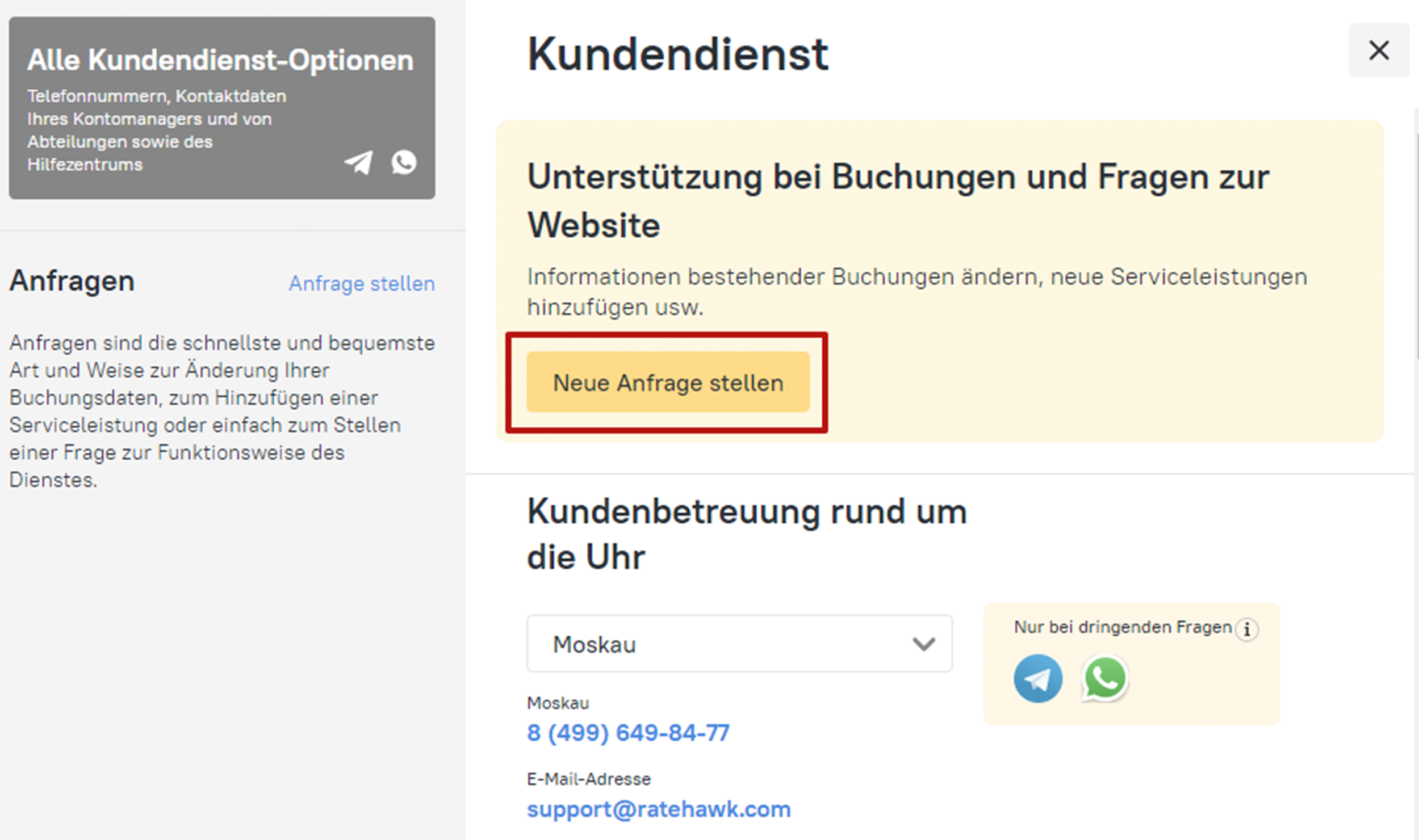 - Dann klicken Sie auf den Button Neue Anfrage stellen.