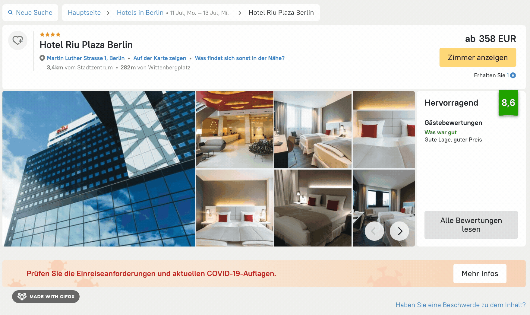 - Klicken Sie unten rechts, auf die Zeile “Haben Sie eine Beschwerde über den Inhalt?” unter der Hotelbewertung.
