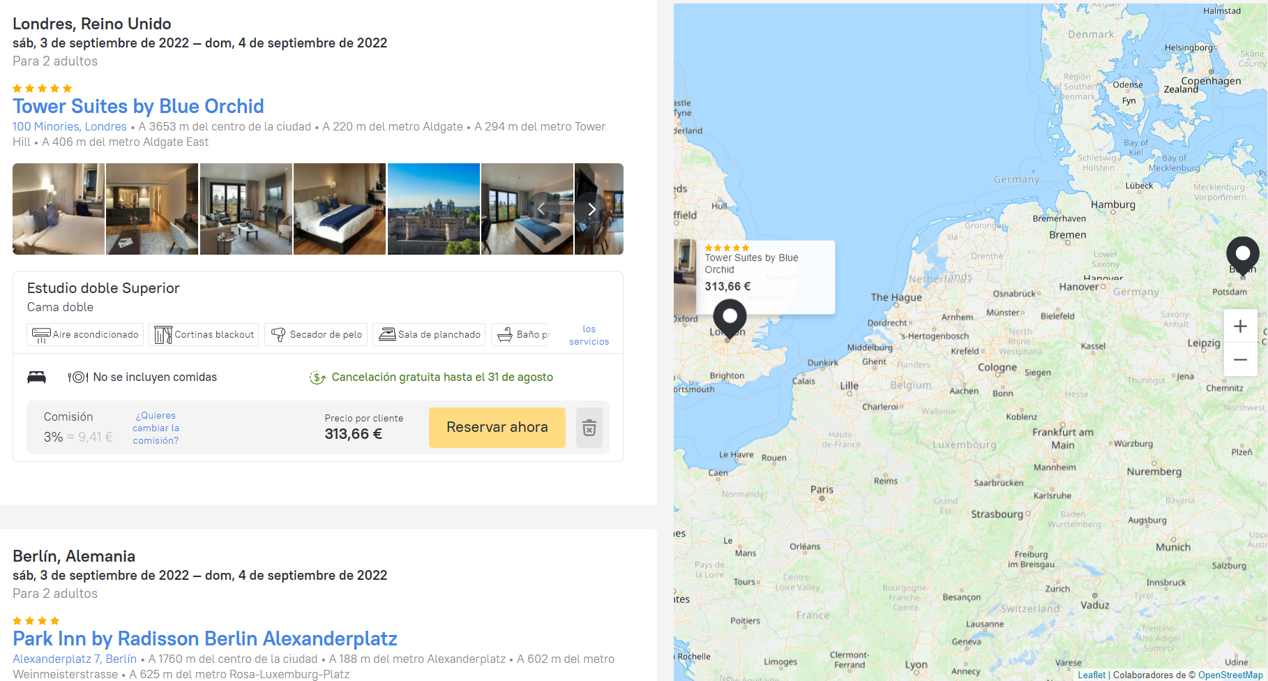 - Después de que el cliente escoja, busca la tarifa requerida en la selección y haz clic en Reservar. Se te dirigirá a la página de reservas para completarla.