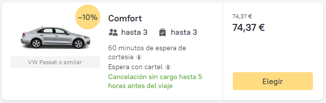 - Selecciona la opción de traslado que desees. Las tarifas con descuento aparecen con una marca especial.