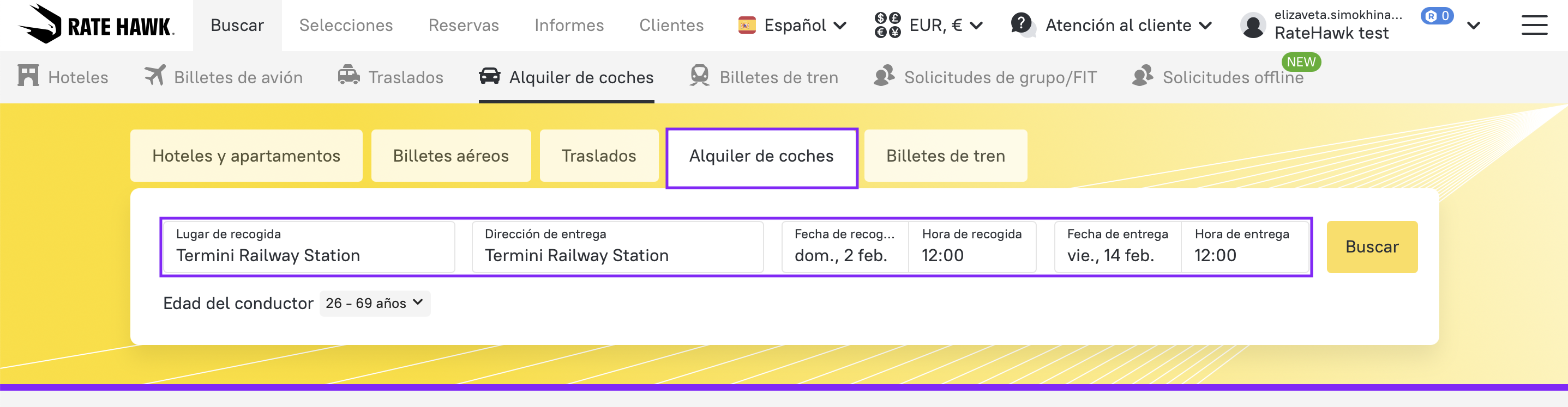 - En la barra de búsqueda del sitio web, introduce tus ubicaciones de recogida, de entrega y las fechas.