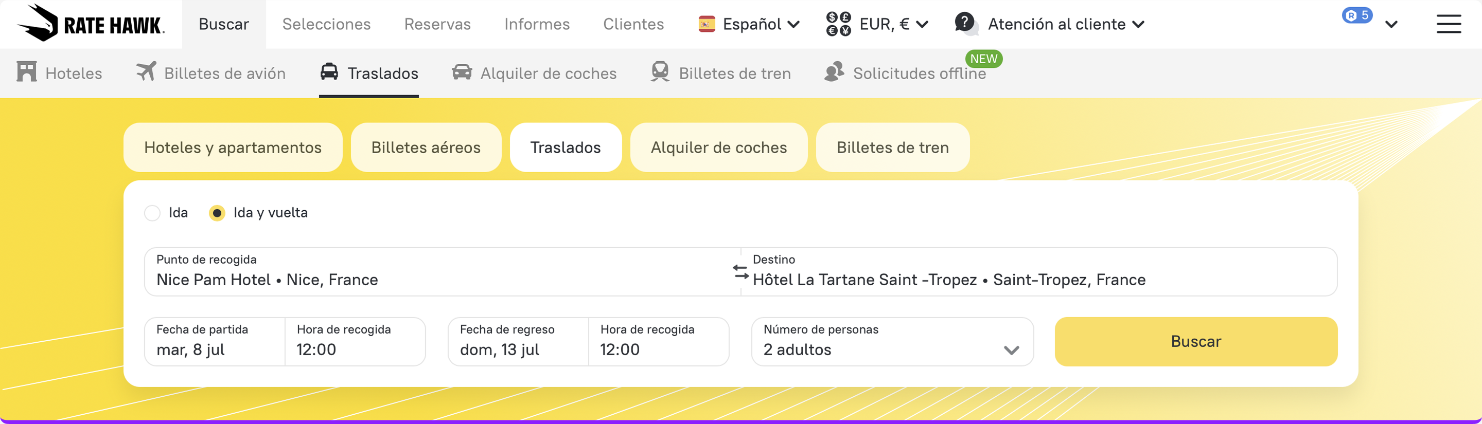 Hemos añadido la opción de Pago en bruto de los traslados — aportándote más flexibilidad para crear paquetes de viajes completos y mejorar tus márgenes de ganancias.