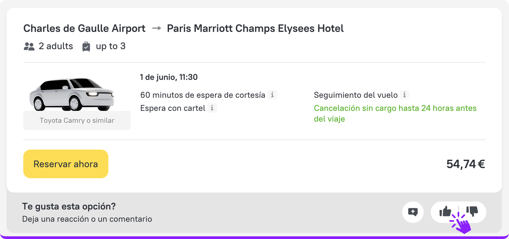 - Valorar hoteles y traslados con «Me gusta» o «No me gusta»