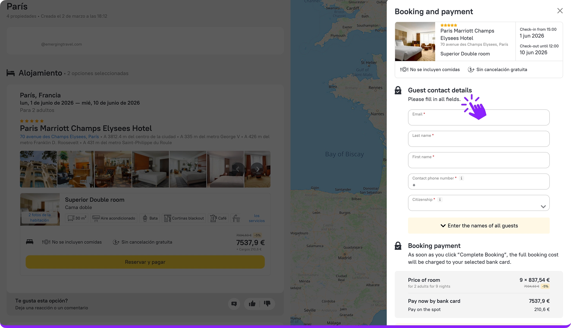 5. Cuando seleccione un hotel, se abrirá el formulario de pago.