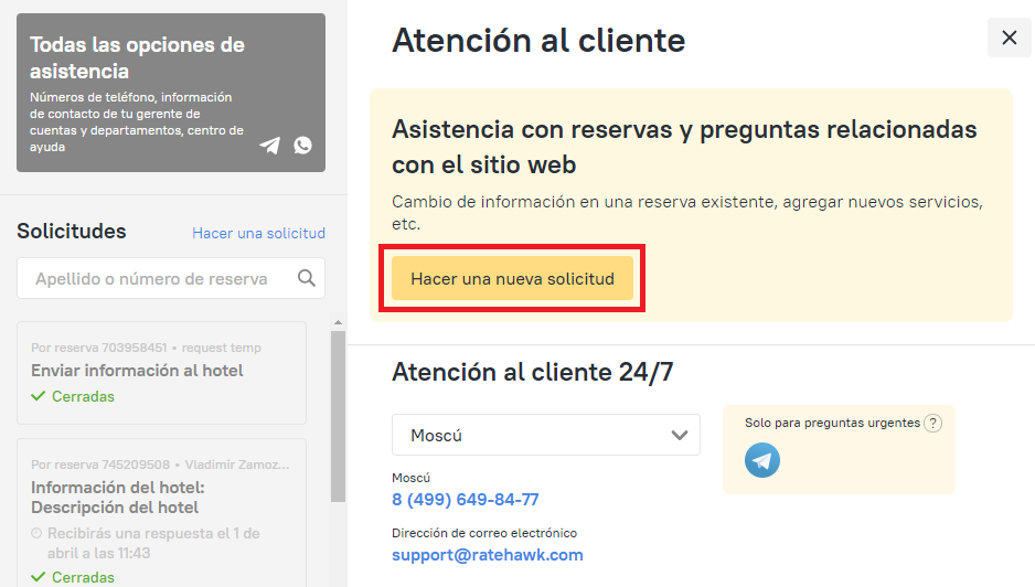 Puedes enviar la solicitud directamente desde la página de reserva o desde la sección de asistencia. Para hacerlo:
