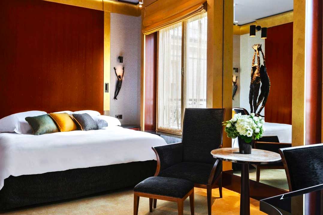 The hotel has 178 spacious rooms with the view on the streets of Paris. Bathrooms have heated floors and complimentary toiletries. The hotel has a spa .