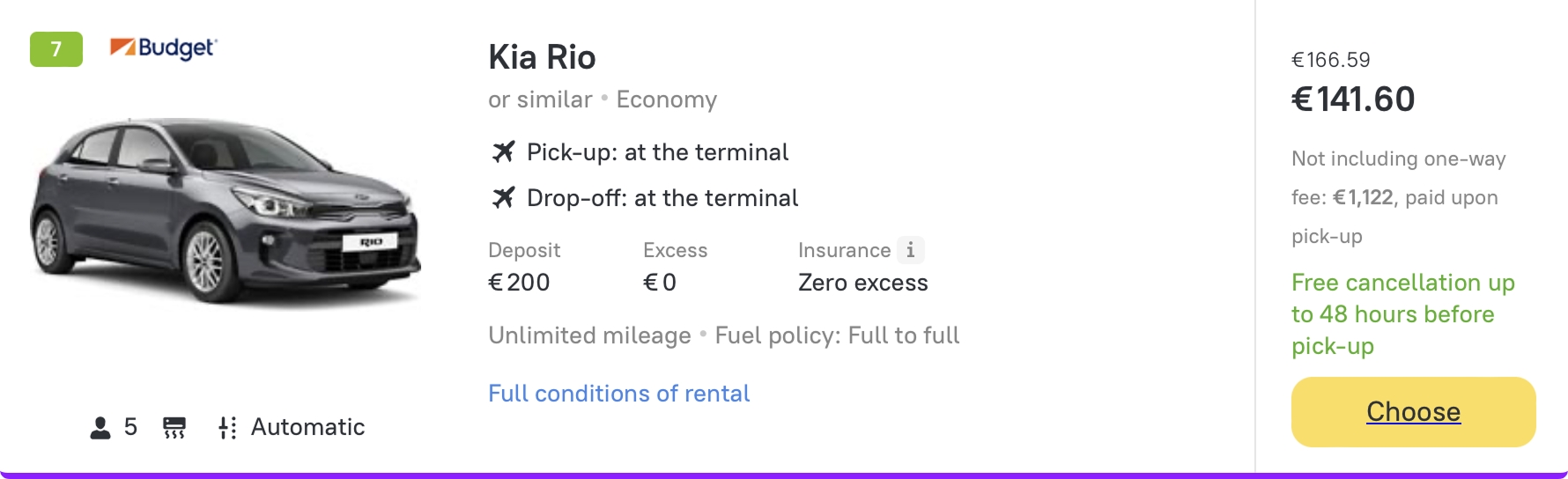 Before confirming any rental, always review the full rental conditions on our platform. It’s the easiest way to avoid hidden fees and make sure everything runs smoothly. The full rental conditions are available on the car rental card, as shown below.