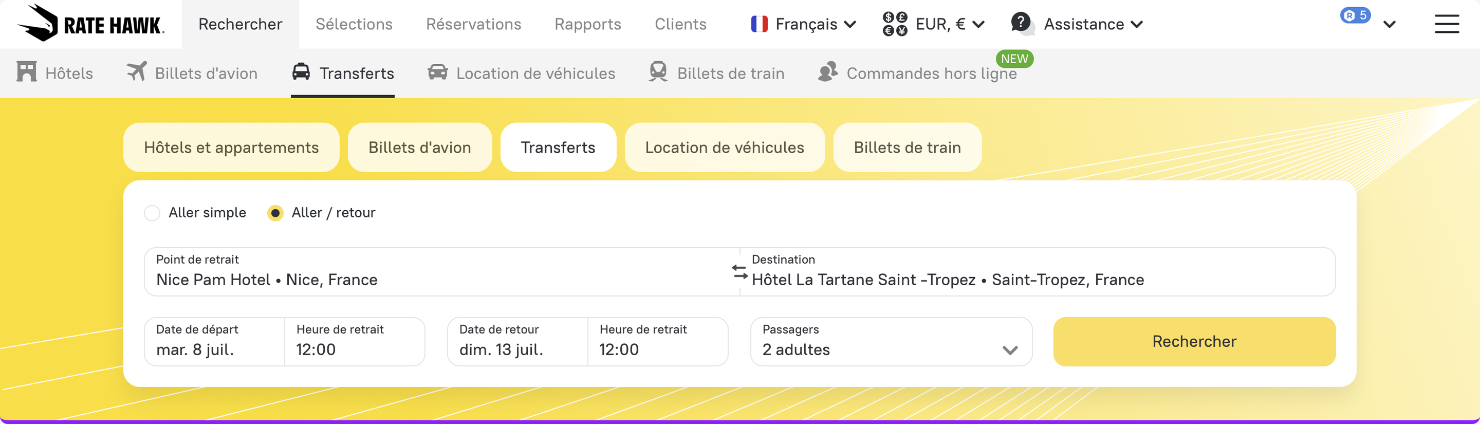 Nous avons ajouté une option de paiement brut pour les transferts — vous offrant plus de flexibilité pour créer des forfaits de voyage complets et améliorer vos marges bénéficiaires.