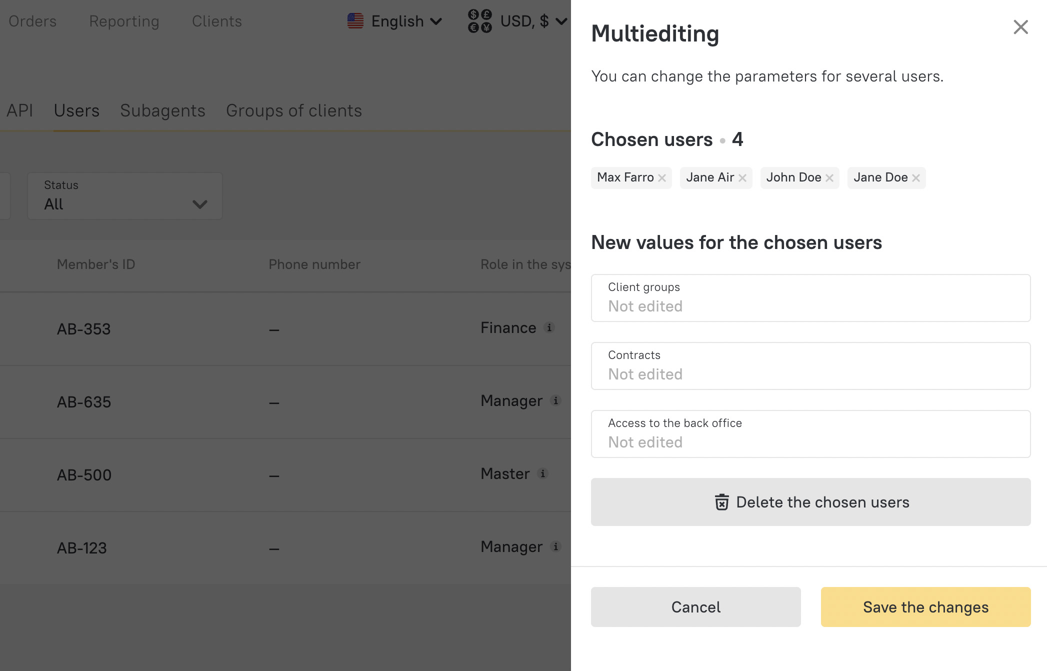 La fonctionnalité multi-édition donne accès à un grand volume de données. Par conséquent, cette fonctionnalité ne sera disponible que pour les utilisateurs ayant le rôle de maître dans le compte en ligne.