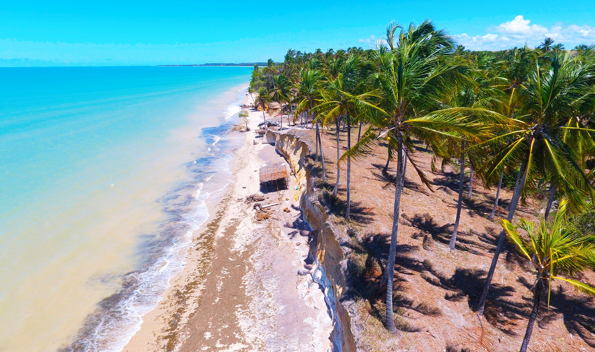 Alors que les amoureux du soleil envahissent les plages de Carro Quebrado, les six kilomètres de Praia do Carro Quebrado, sur la côte d’Alagoas, dans le nord du Brésil, restent merveilleusement isolés, probablement parce que cela implique un peu d’effort pour y arriver. Mais elle en vaut la peine ! Le plaisir commence avant même que les visiteurs n’atteignent la plage alors qu’ils se faufilent le long de la piste sinueuse flanquée de cocotiers.