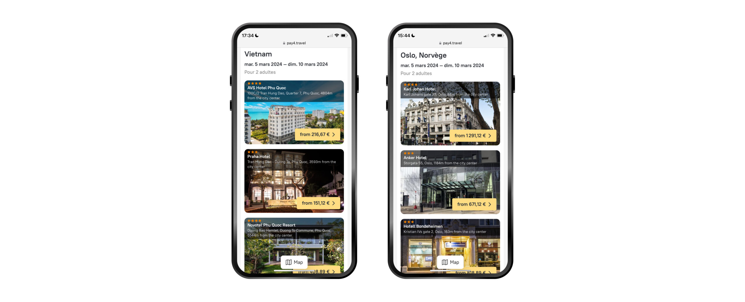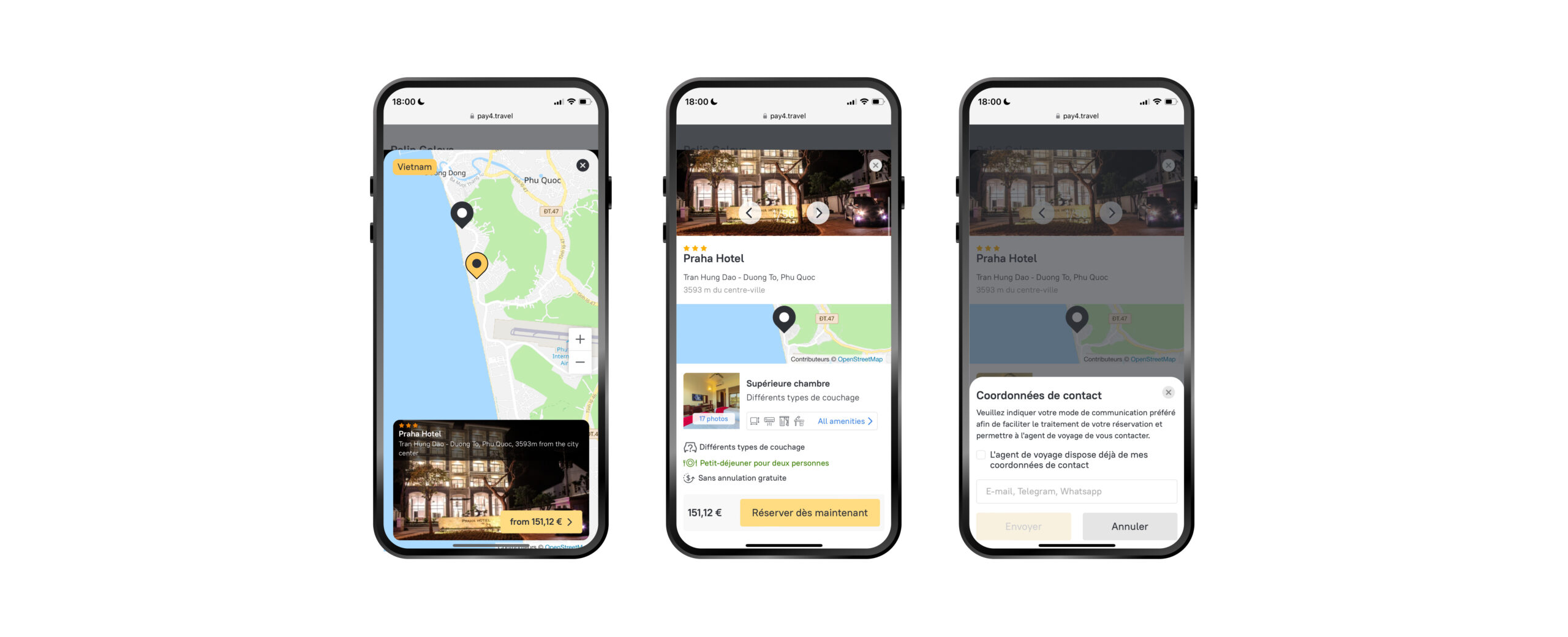 Nous avons fait en sorte de faciliter vos interactions avec vos clients depuis n’importe quel appareil, comme un ordinateur fixe ou portable, une tablette ou un téléphone. Votre client recevra une sélection simple et attractive, qu’il pourra rapidement parcourir et sélectionner l’hôtel de son choix, même en déplacement.