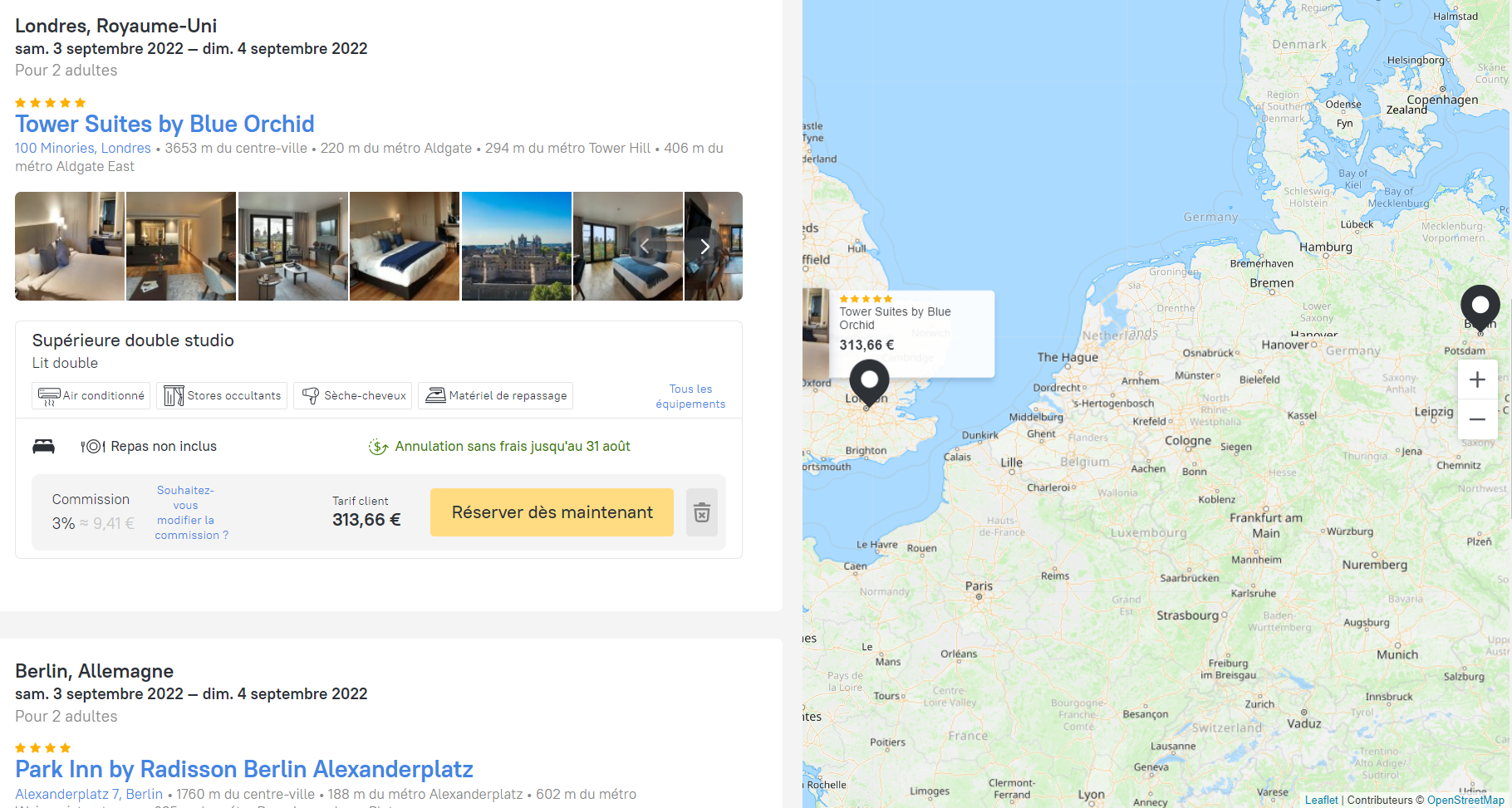 Vous pouvez désormais ajouter à la sélection uniquement ce dont le client a besoin: un tarif avec petit-déjeuner, une vue sur la mer ou un lit supplémentaire directement depuis la page de résultats.