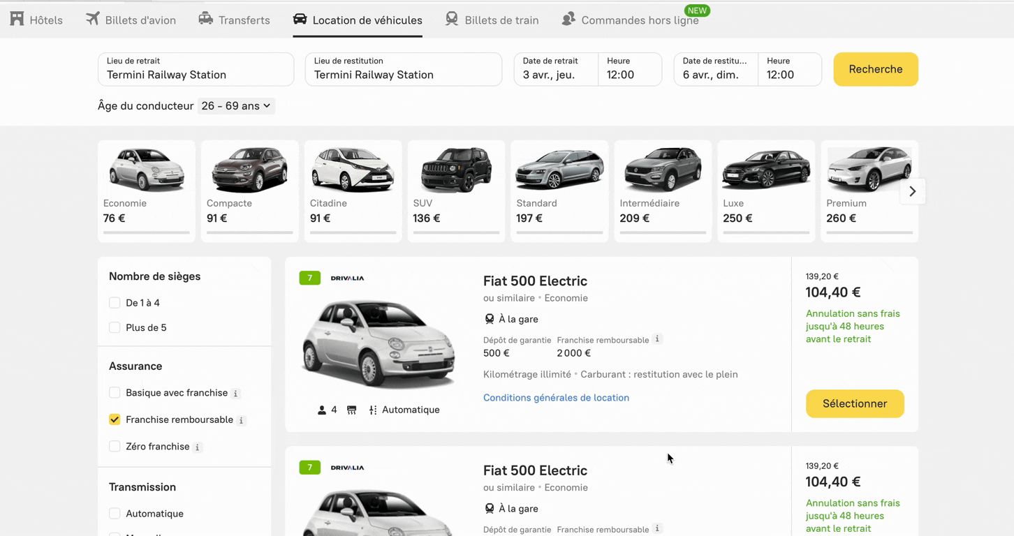 Des SUV aux modèles économiques, réservez vos véhicules en un clic, avec désormais la possibilité de louer au Japon, en Thaïlande, en Afrique du Sud et au Vietnam.