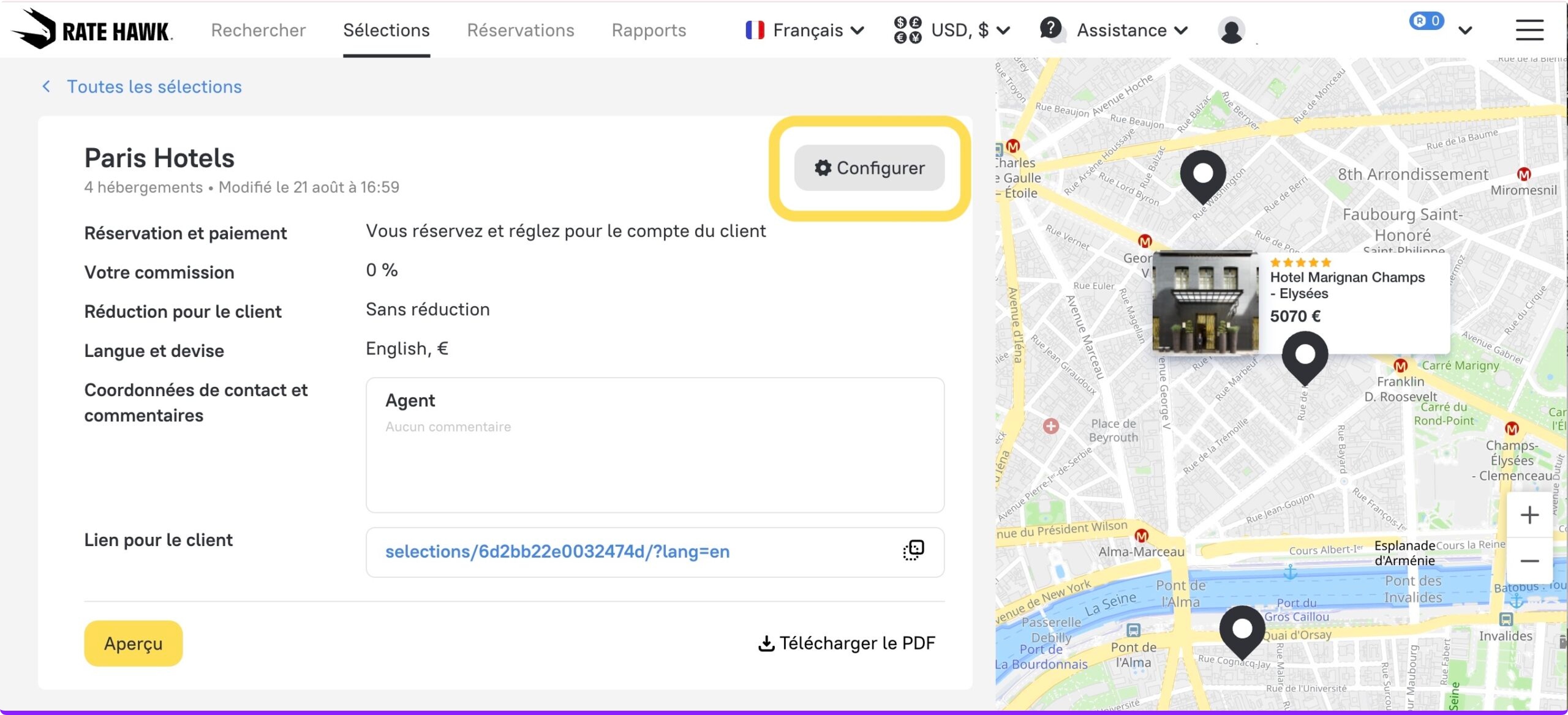 Pour simplifier votre processus de réservation et renforcer votre productivité, nous avons encore amélioré certains éléments de l’outil Selections. Entre la mise à jour automatique des tarifs et la nouvelle organisation des paramètres, tout a été pensé pour rendre votre travail plus simple et plus agréable.