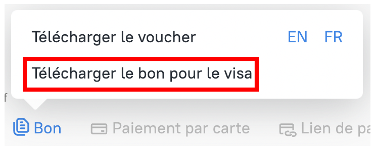 Dans la fenêtre contextuelle, choisissez Télécharger le bon pour le visa.