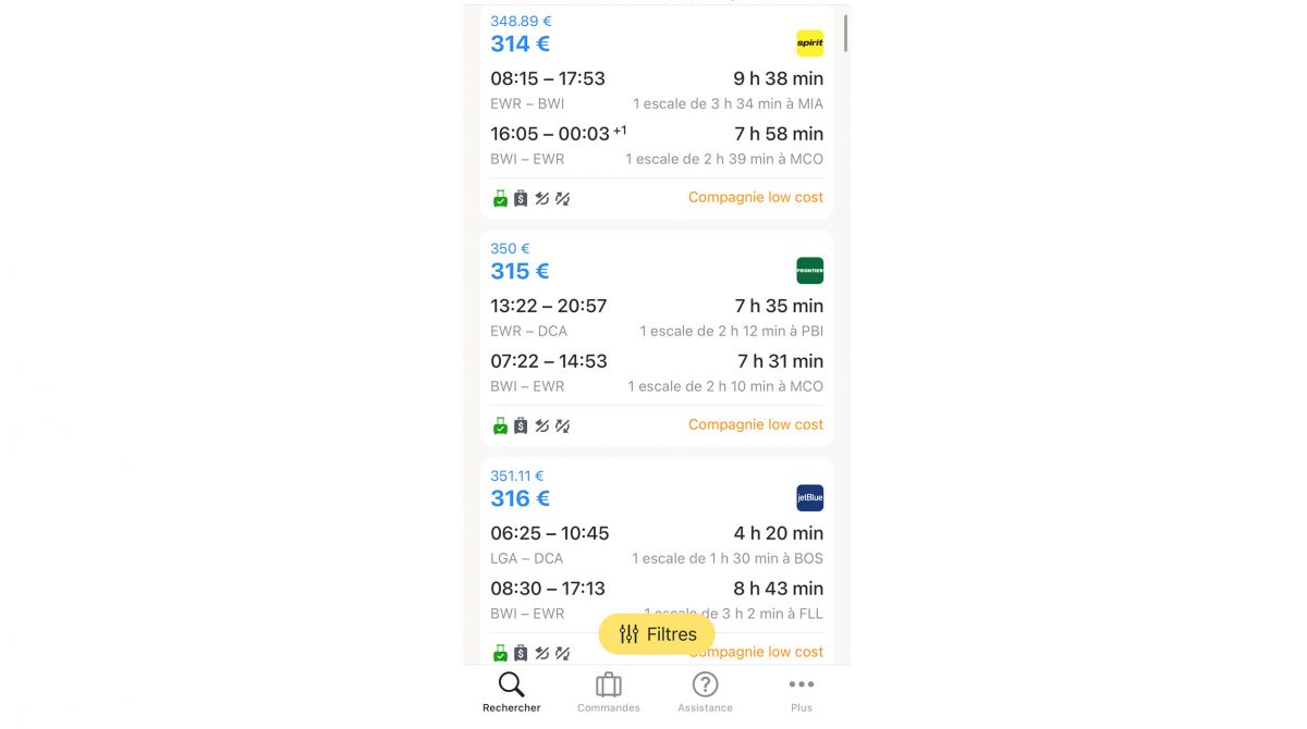 Remarque: l’application mobile affiche toutes les combinaisons de vols possibles. Nos tests ont montré que cette solution est celle qui fonctionne le mieux sur les appareils mobiles, et cela vous facilitera la réservation.