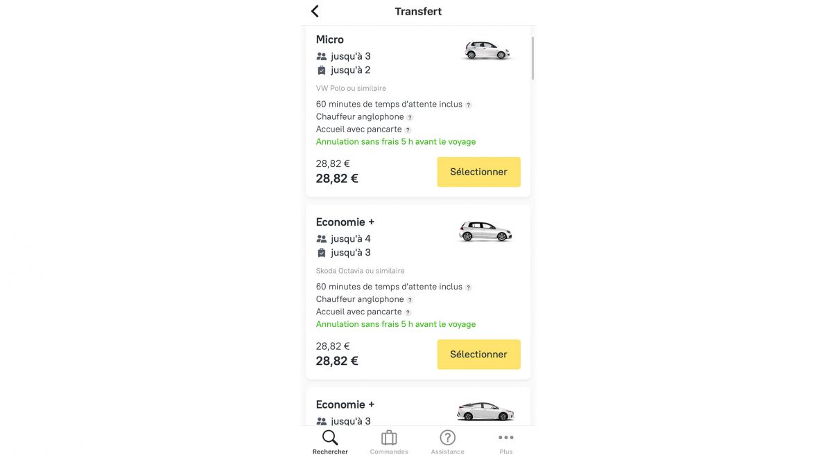 Des informations sur les transferts déjà réservés sont disponibles dans la section Commandes.