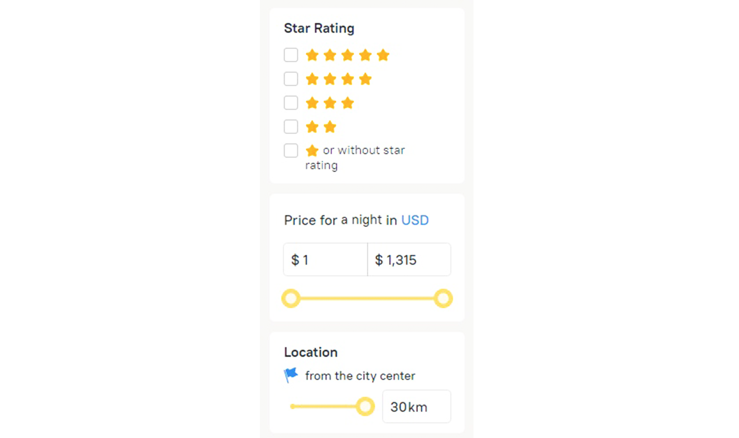 Filtering by price, rating and location