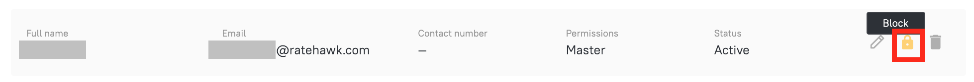 In order to block a current account, click on the Padlock icon, and then click it again to restore access.