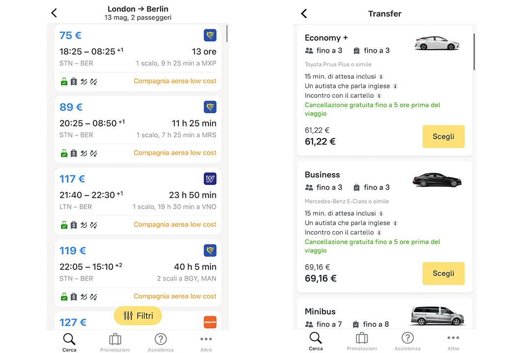 Abbiamo aggiunto la funzione di prenotazione Voli e Transfer sull’app per dispositivi mobili