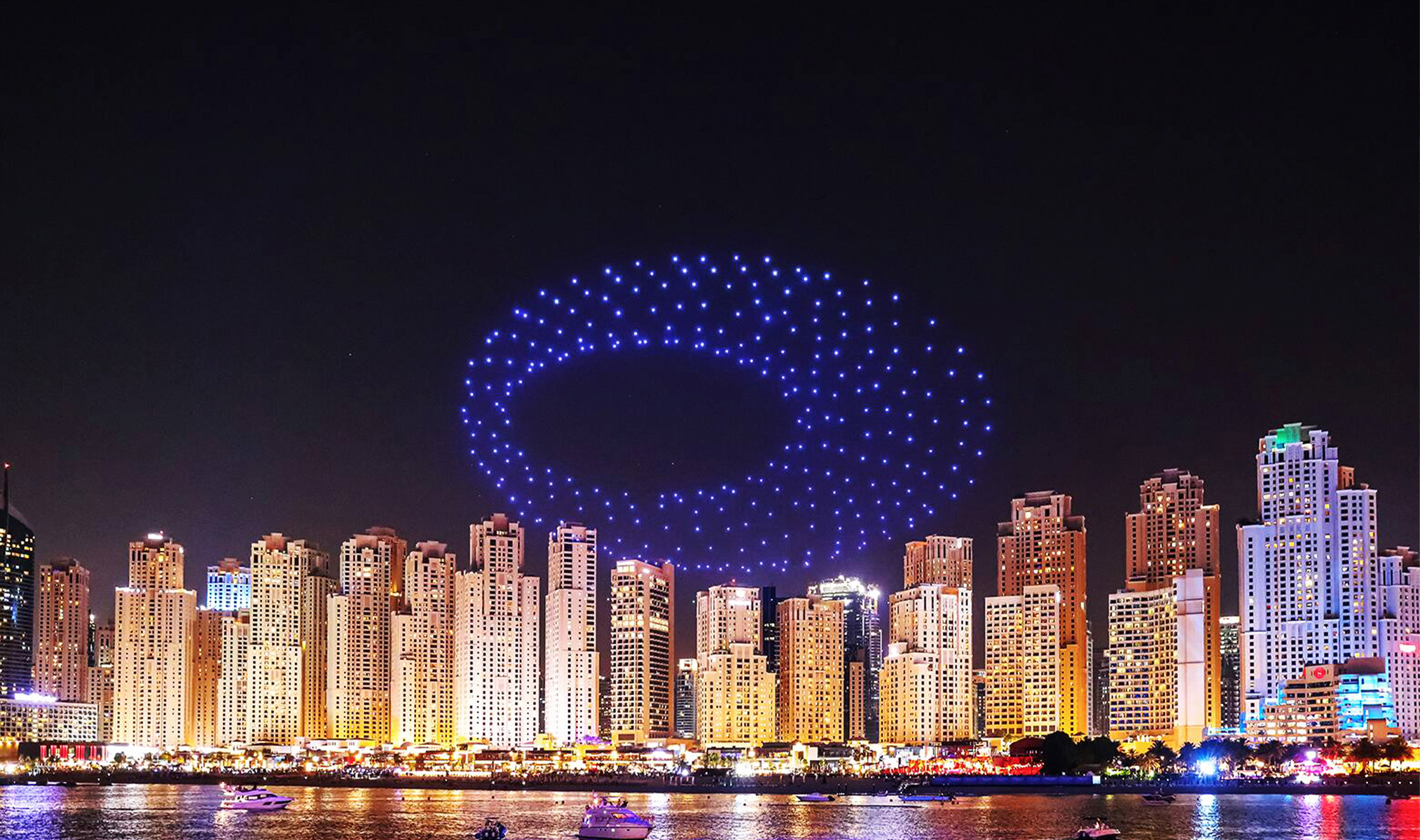 Nel cielo notturno di Dubai, la maestria tecnologica prende vita. Al DSF, lo spettacolo dei droni riflette l’avanguardia della città, dove l’innovazione e la tradizione si incontrano in uno scenario affascinante. Qui, la tecnologia non ha confini.