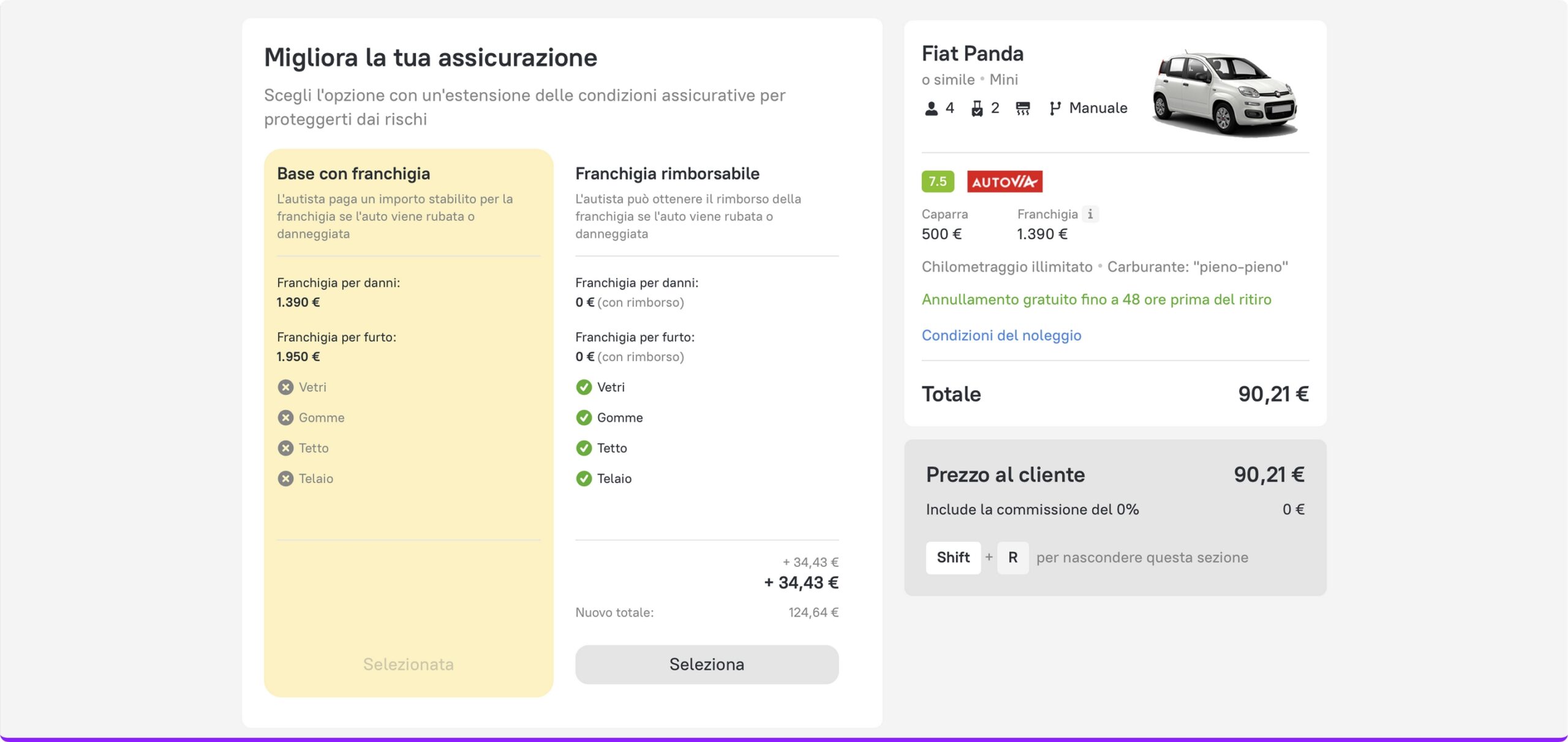 - Upgrade dell’assicurazione sul noleggio auto sul modulo di prenotazione