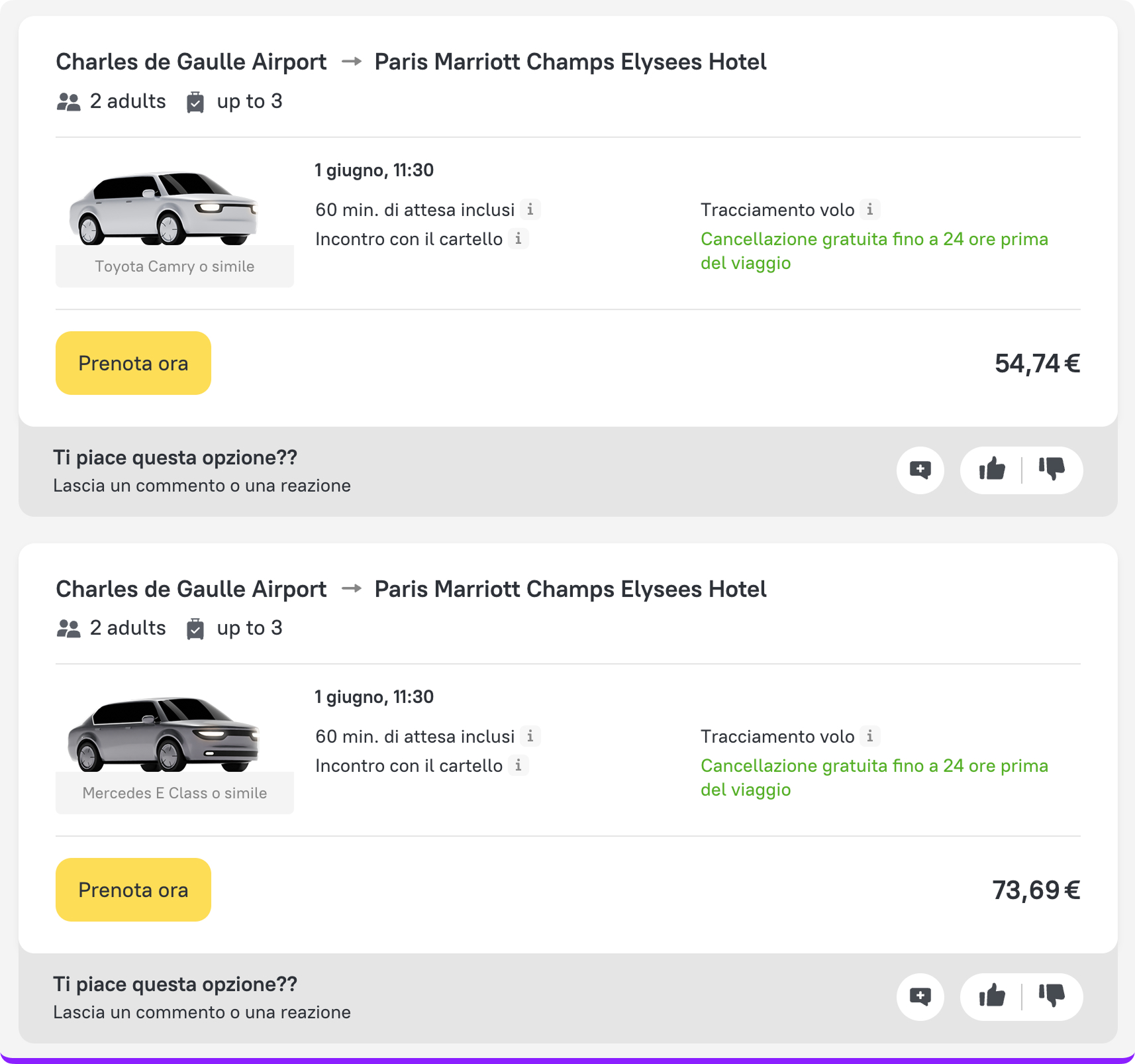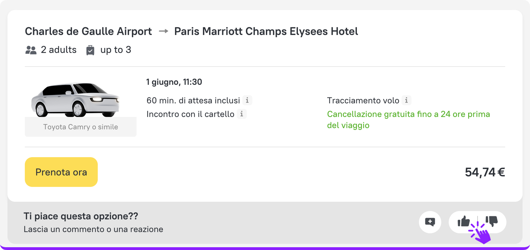 - Mettere Mi piace o Non mi piace a hotel e transfer