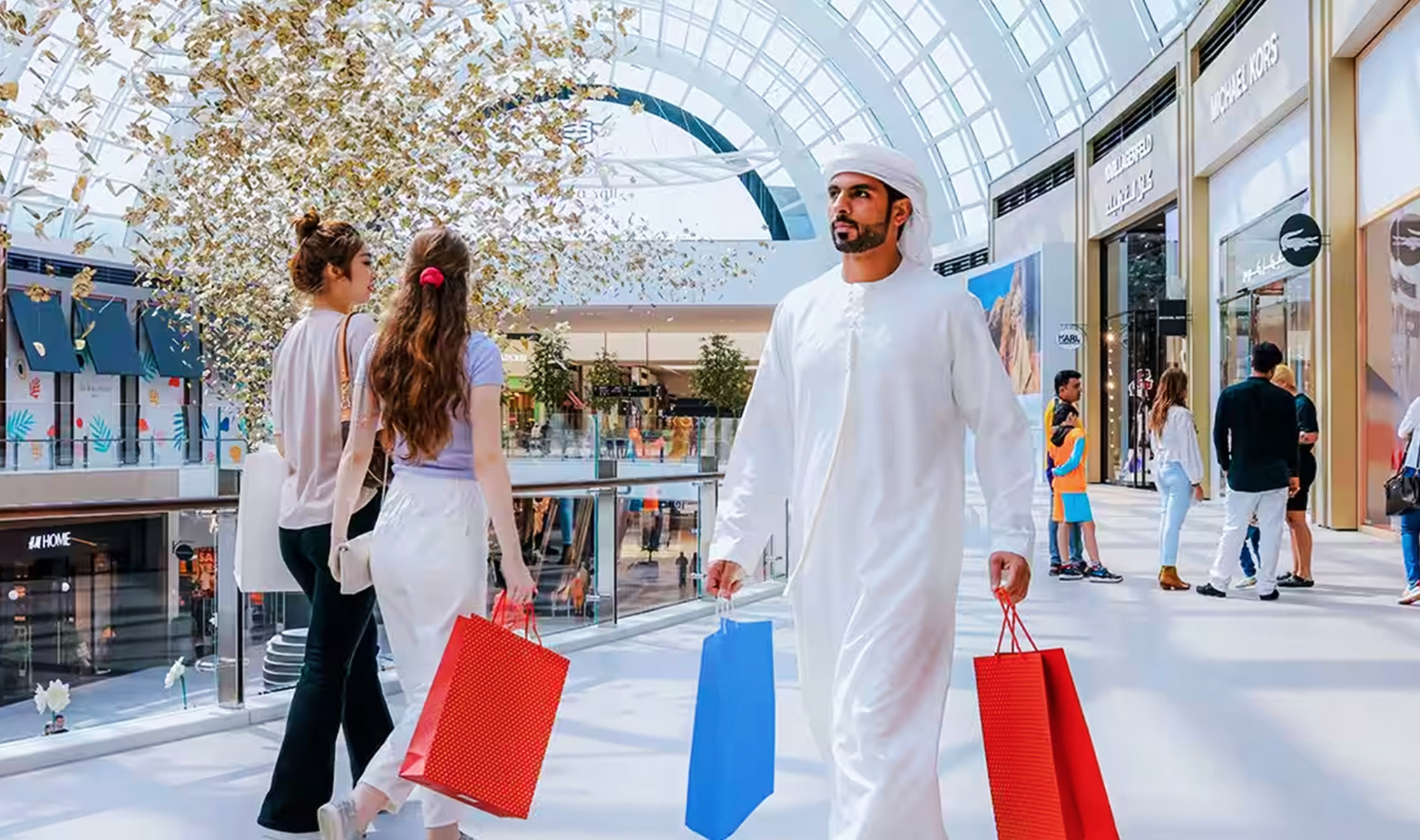 Il primo centro commerciale al mondo, il Mall of the Emirates, vanta una superficie di vendita al dettaglio di 2,4 milioni di metri quadrati ed ospita circa 630 marchi internazionali.