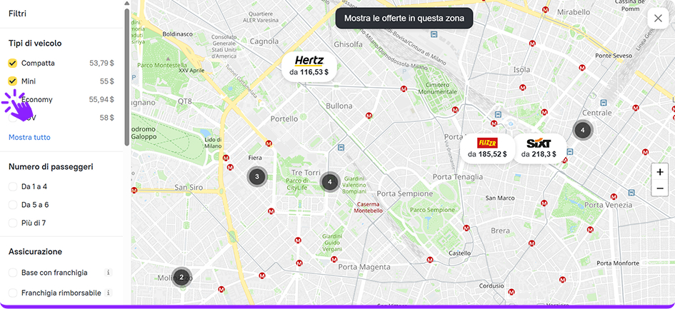La nuova mappa ti aiuta a trovare più rapidamente l’agenzia di noleggio ideale, a confrontare le offerte nelle vicinanze e a selezionare il luogo di ritiro più comodo per i tuoi clienti.