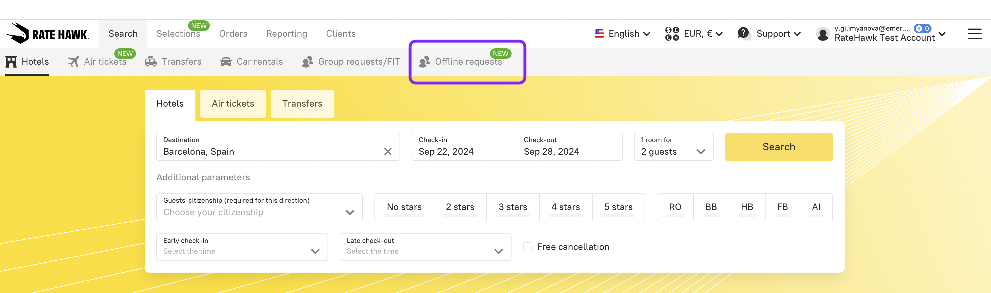 With the new tab, making offline bookings on RateHawk has become even easier.