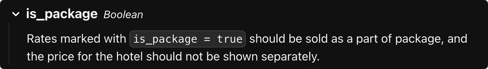 Package-only rates are essential for supporting package sales across OTAs and tour operators, and this update ensures they can now be identified and used correctly in your systems. To explore the updated structure and example responses, review the technical documentation below.