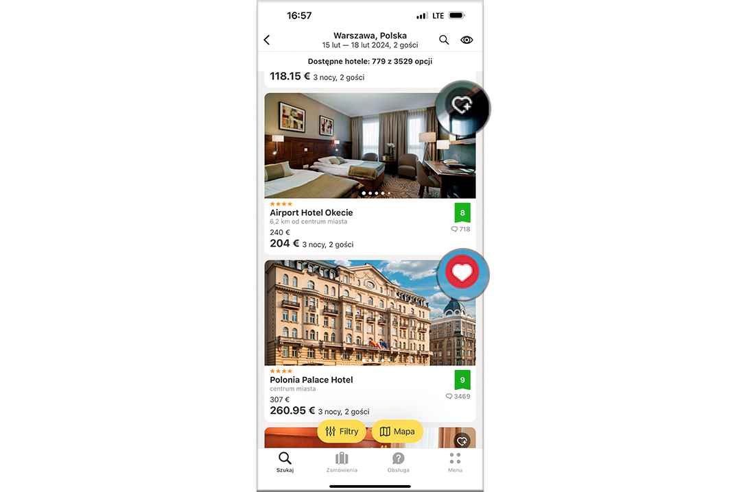 Przeglądaj hotele i zapisuj je w „Ulubionych”
