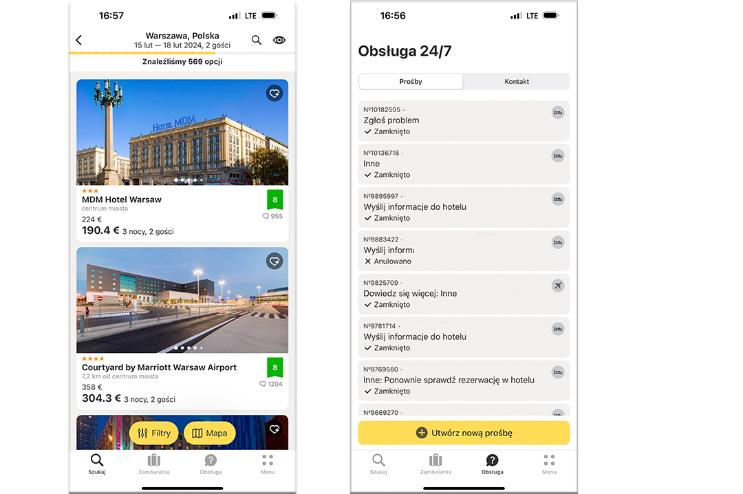 - Otwórz sekcję „Zamówienia”, aby sprawdzić godzinę przylotu i nazwę hotelu;