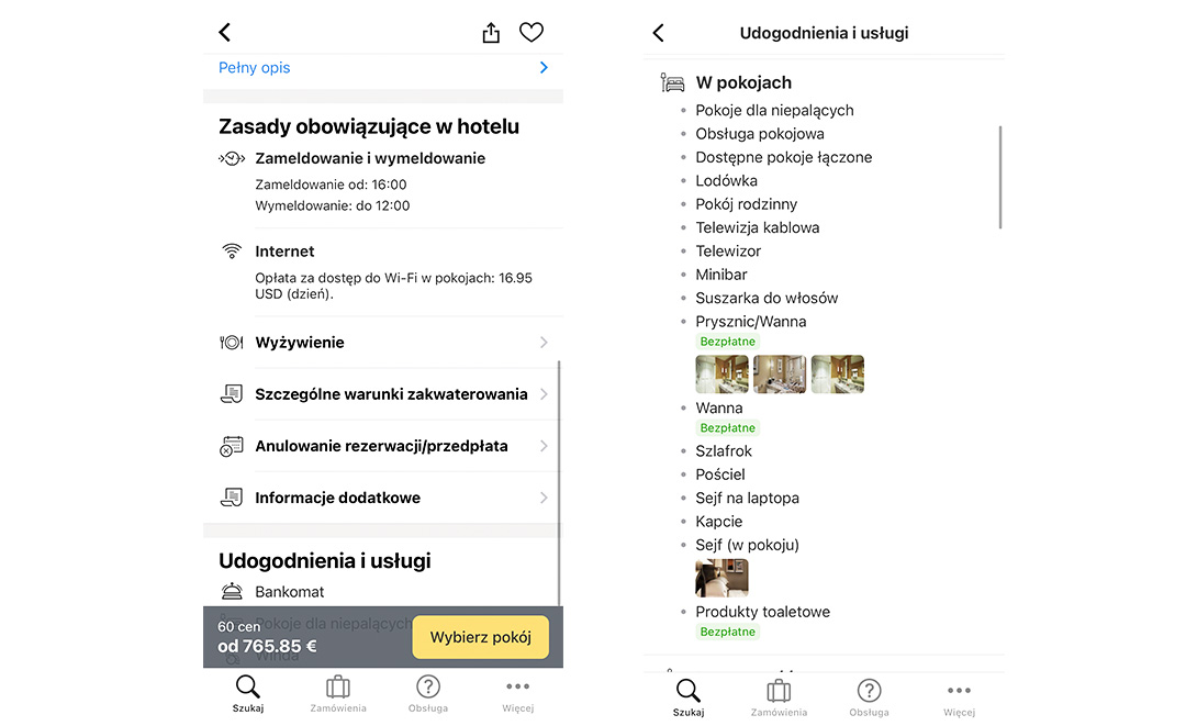 - Bezpłatne udogodnienia zapewniane przez hotel są wyróżnione i wyświetlają się ich zdjęcia;