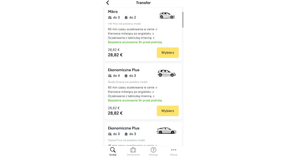 Informacje na temat transferów, które już zostały zarezerwowane są dostępne w sekcji Zamówienia.