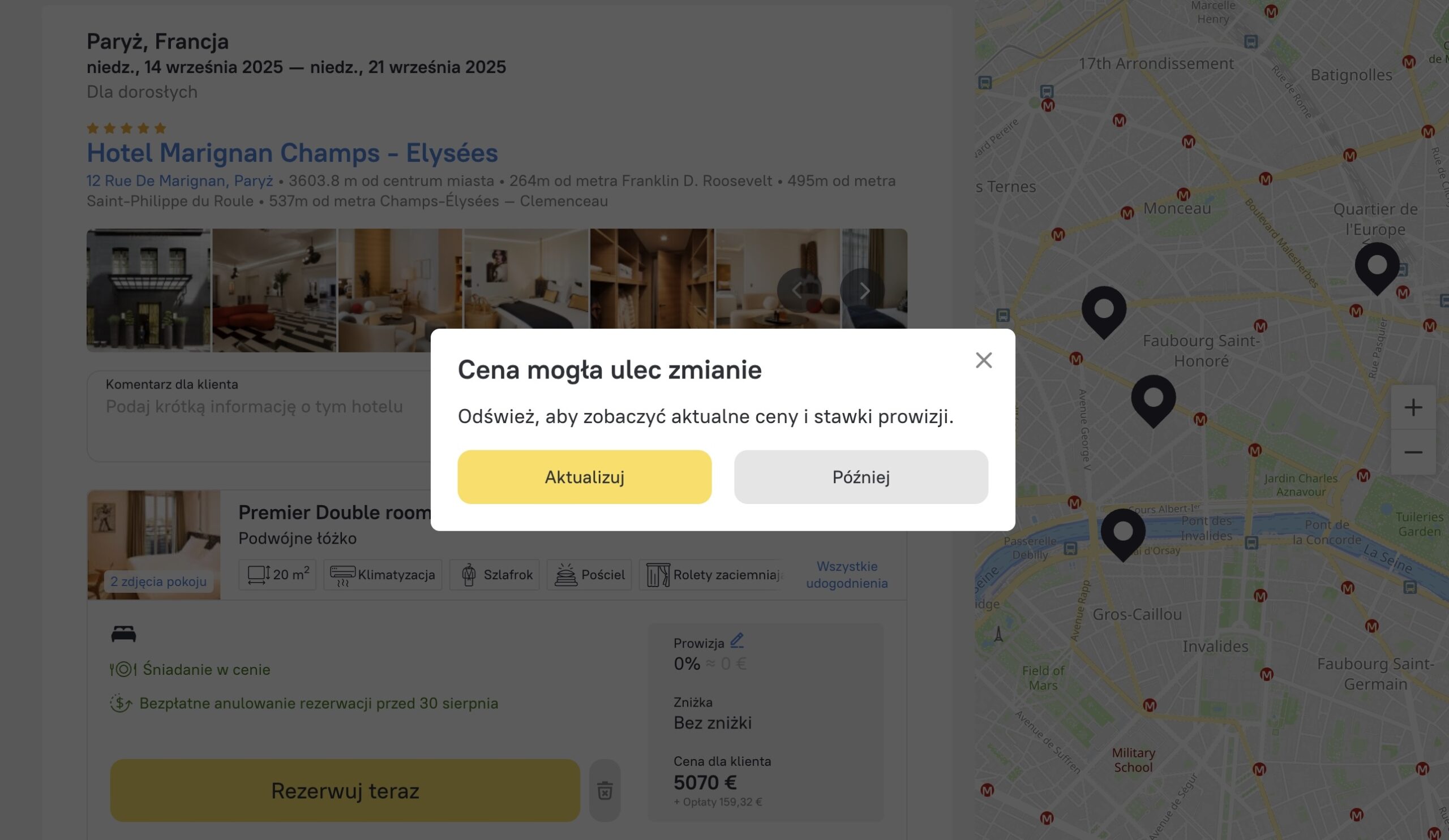 Od teraz wybór otwiera się w nowym oknie, a najnowsze ceny i dostępność są automatycznie aktualizowane. W przypadku pozostawania na stronie przez ponad 10 minut, pojawia się wyskakujące powiadomienie z prośbą o odświeżenie strony w celu uzyskania aktualnych kursów. Dotyczy to zarówno agentów, jak i klientów, dzięki czemu zawsze mają dostęp do najbardziej aktualnych ofert.