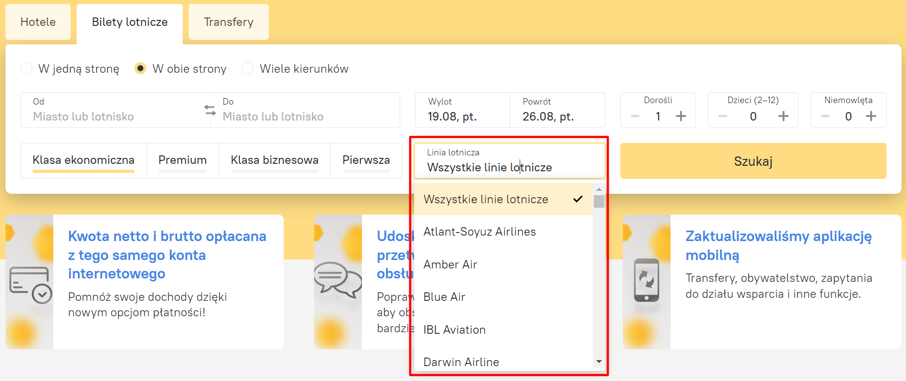 Dodaliśmy filtr wyszukiwania biletów lotniczych
