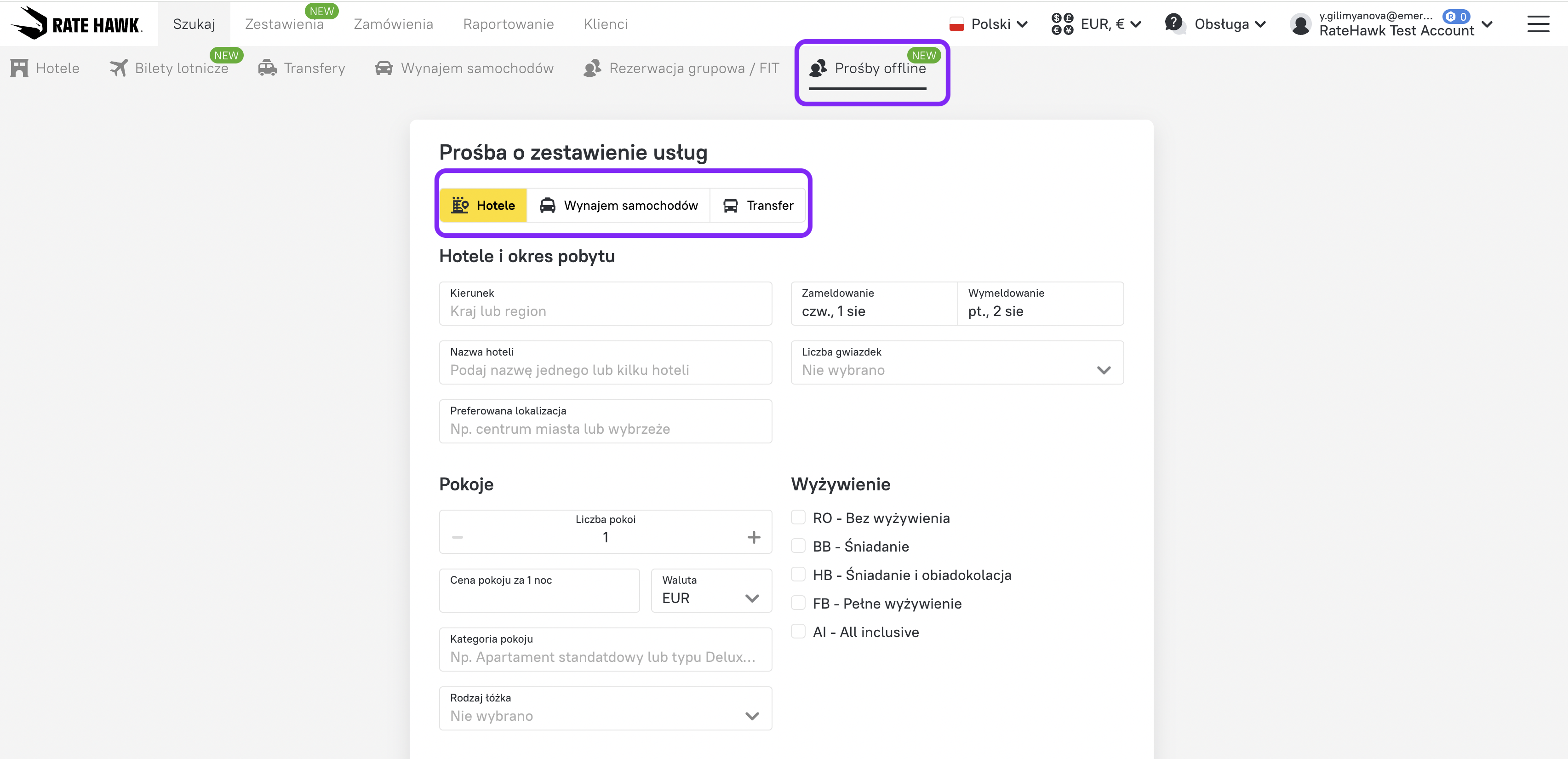 - Zaloguj się do swojego konta RateHawk.