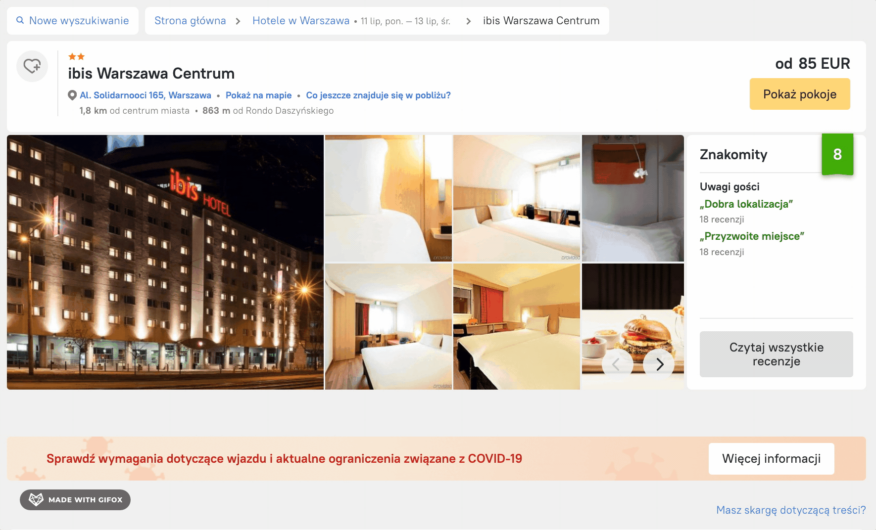 - Kliknij wiersz Masz zastrzeżenia dotyczące treści? pod oceną hotelu.