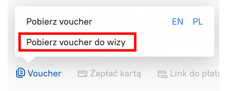 - W wyskakującym okienku wybierz Pobierz voucher do wizy;