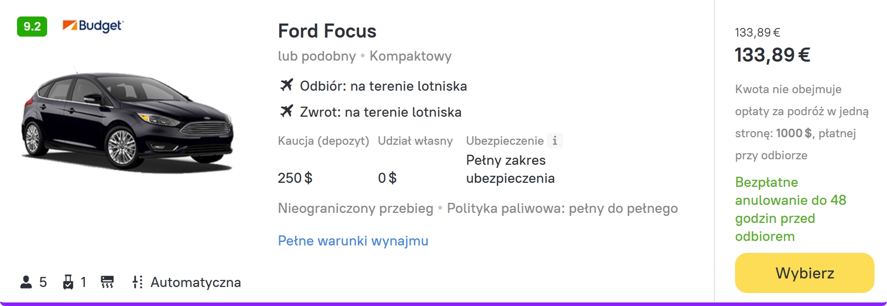 - Warunki ubezpieczenia w skrócie: Sprawdź rodzaj i szczegółowe warunki ubezpieczenia bezpośrednio na karcie wynajmu samochodu.