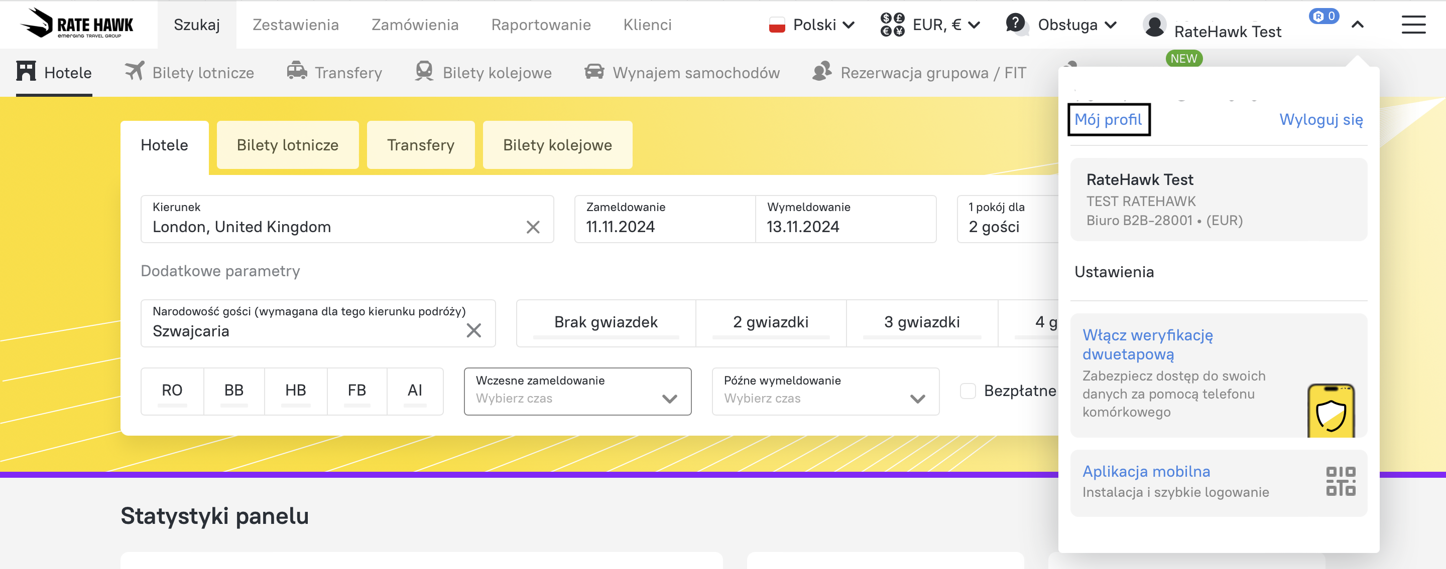 Jeśli wszyscy agenci uzyskują dostęp do serwisu RateHawk za pomocą tego samego konta, kod potwierdzający zostanie wysłany na ten sam numer telefonu, nawet jeśli różne osoby próbują się zalogować.
